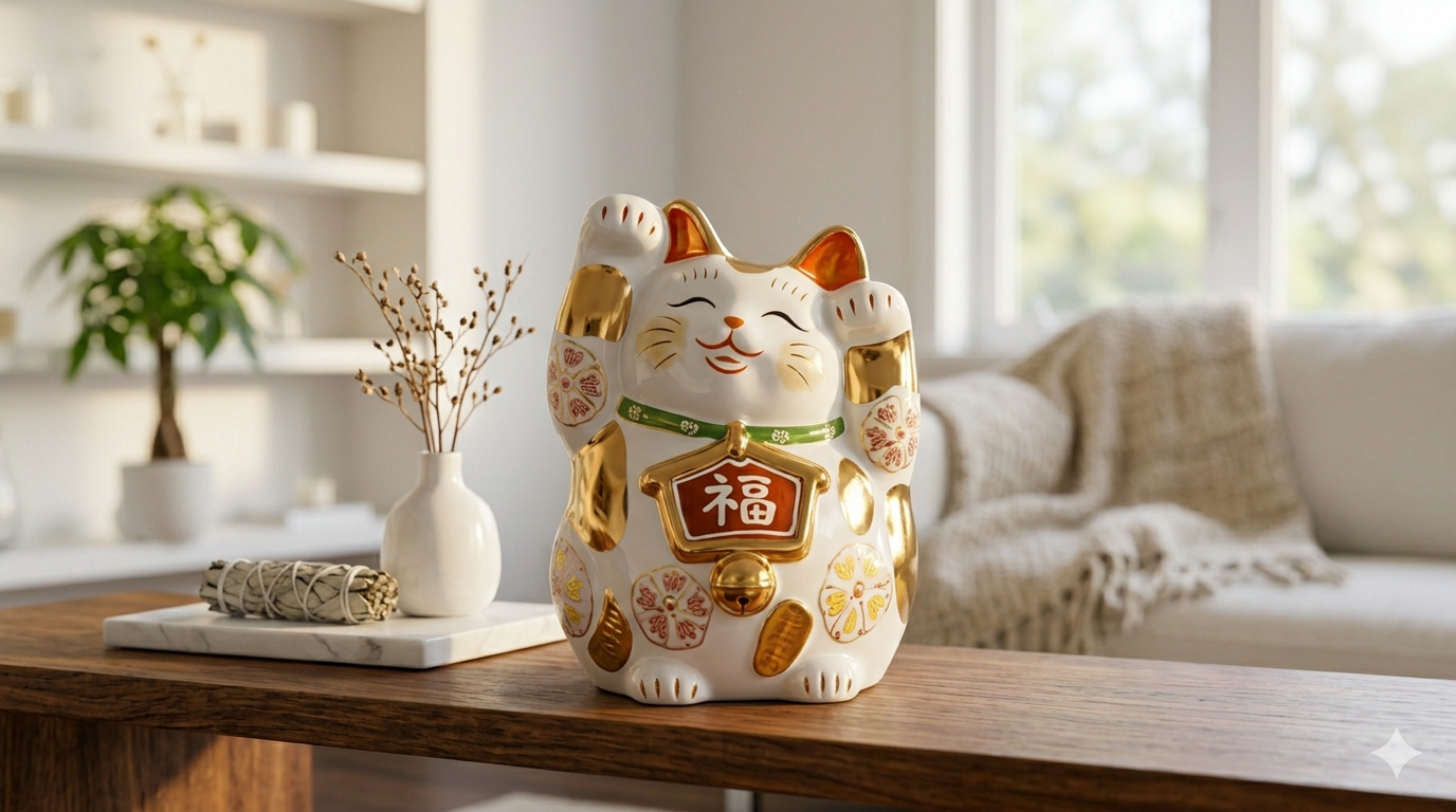 浅草寺の財運気・雷門の縁気を象徴する最強の招き猫。財運・縁運・商売繁盛を招く
